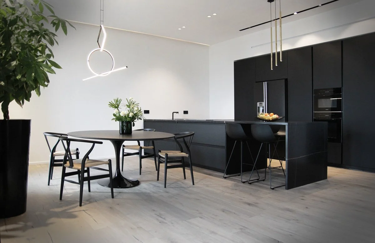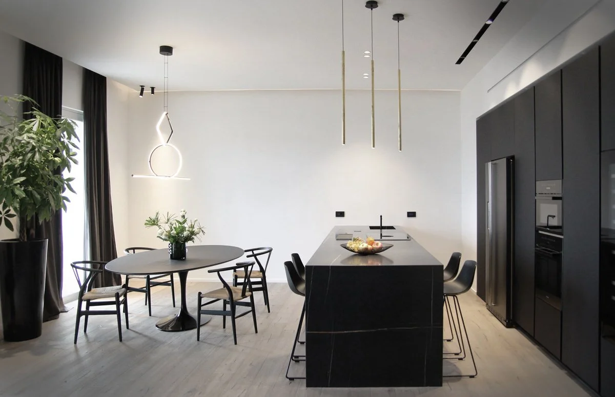 Enfatizzato dal rigore delle linee e dal contrasto tra il bianco assoluto ed il nero, il moderno trova spazio e si raggiunge il giusto equilibrio spaziale fra l'intimità degli ambienti conclusi e l'ampiezza di quelli open.
